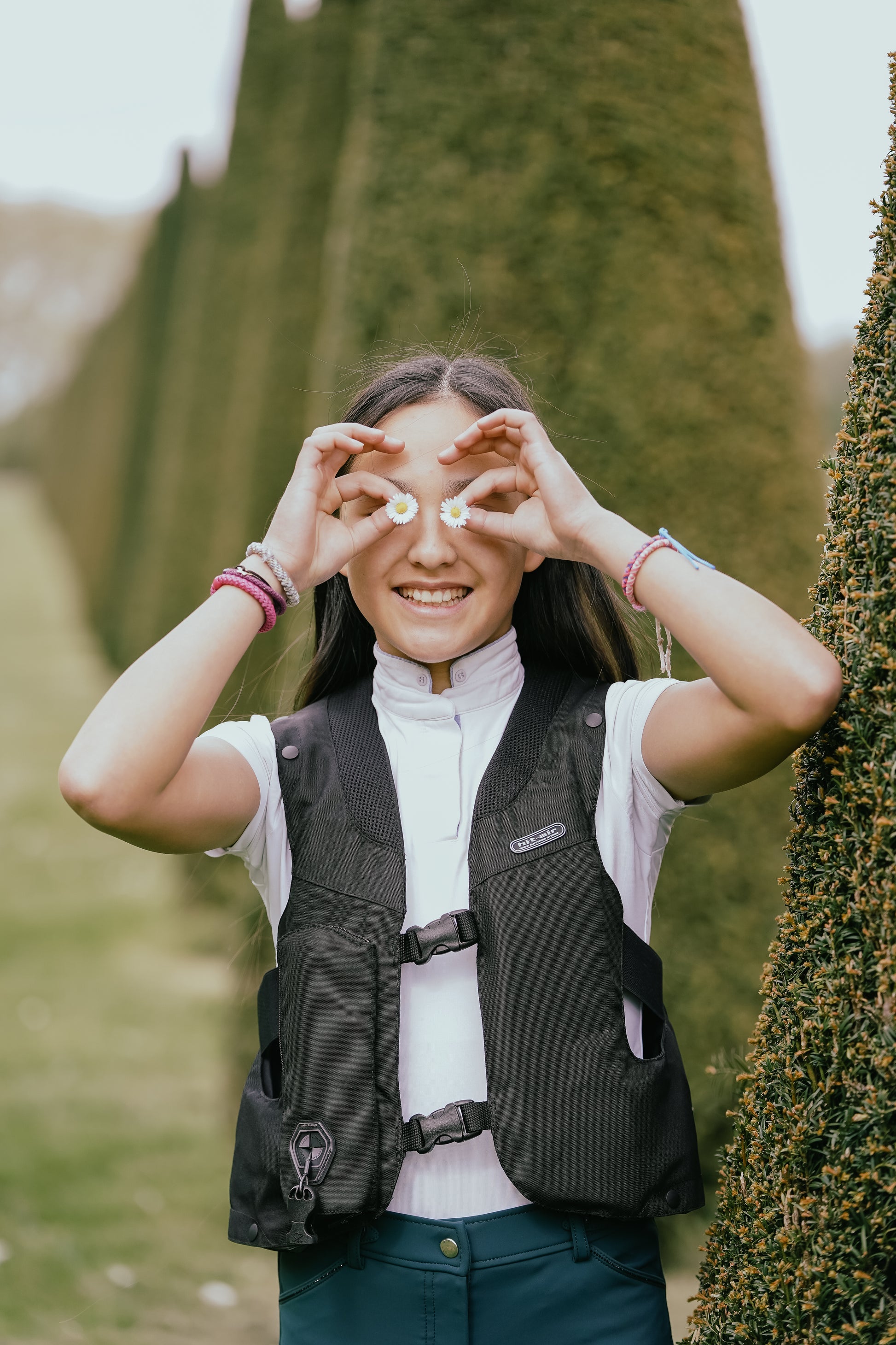 e gilet airbag Hit-Air Complet3 KIDS conçu pour protéger les cavaliers dès le plus jeune âge - mesurant entre 1m15 et 1m30 et pour un poids égal ou supérieur à 18kg.