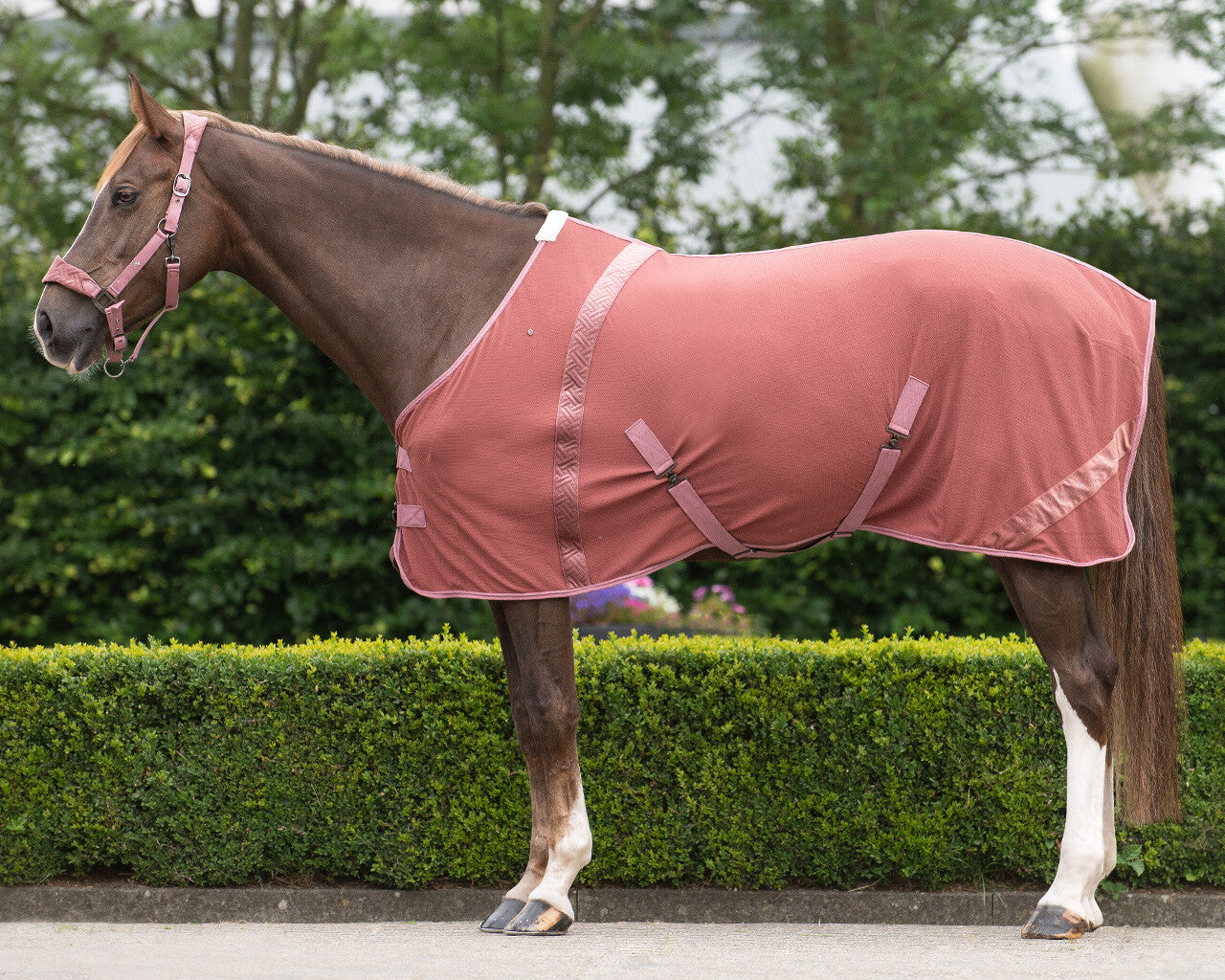 Entrez dans le courant avec le Summer Glow ! Cette couverture de concours d'été est faite d'un tissu gaufré respirant et présente des détails luxueux en velours. Vous voyez déjà votre cheval briller ?