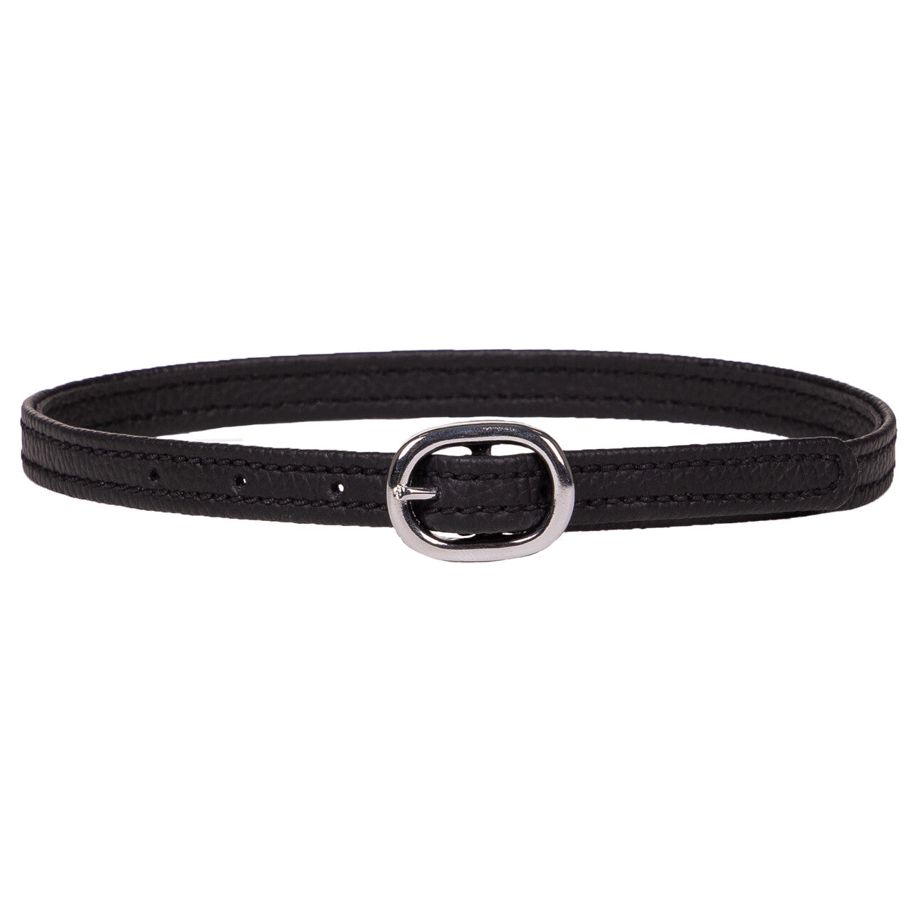 Lanières d'éperons Veganso en imitation cuir. Les lanières d'éperons sont munies d'une boucle ovale. Le matériau est souple, ce qui permet d'attacher facilement les lanières à vos éperons.