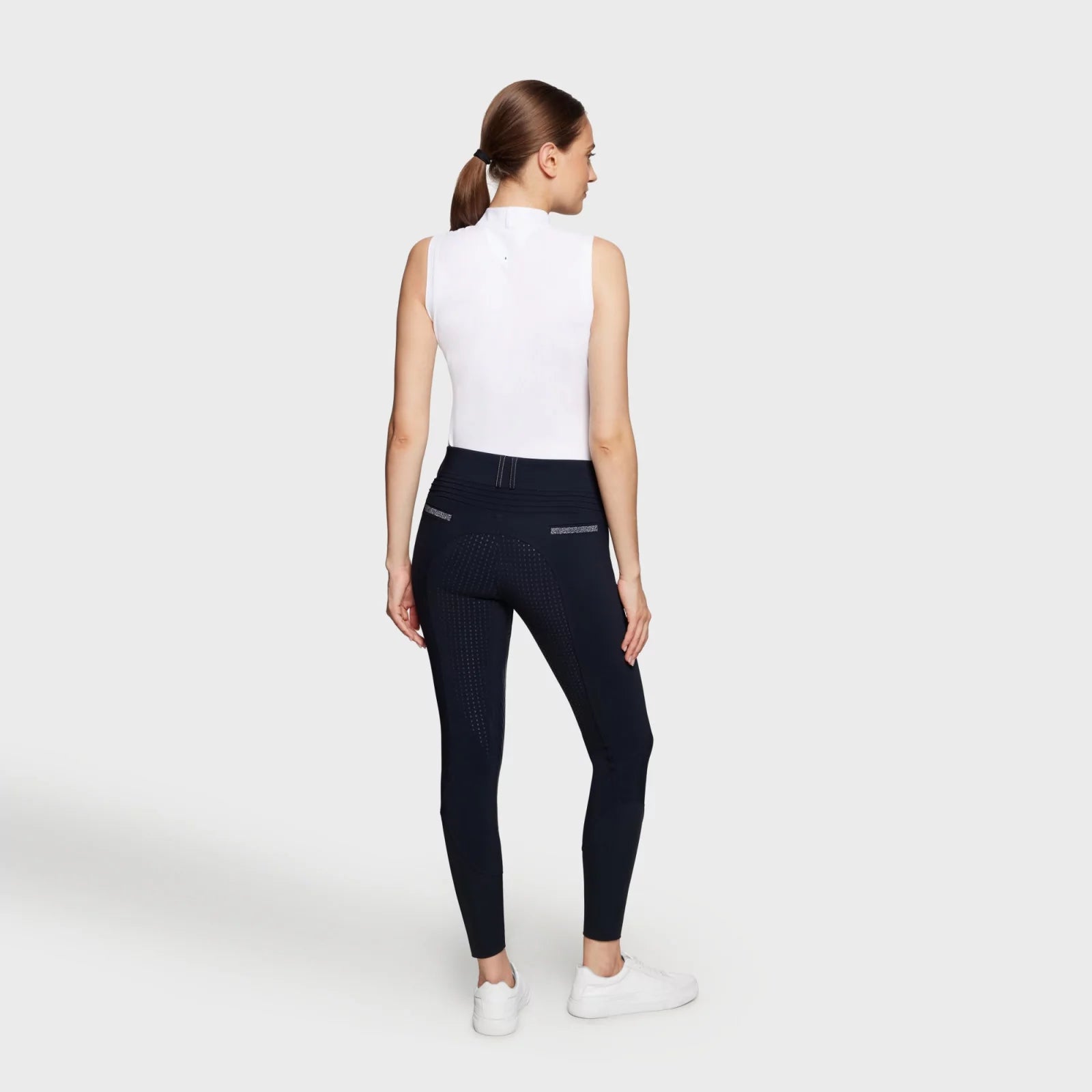 Pantalon d'équitation Clara. Conçue pour les cavalières qui souhaitent un effet seconde peau dans un pantalon au design élégant avec des détails Swarovski.