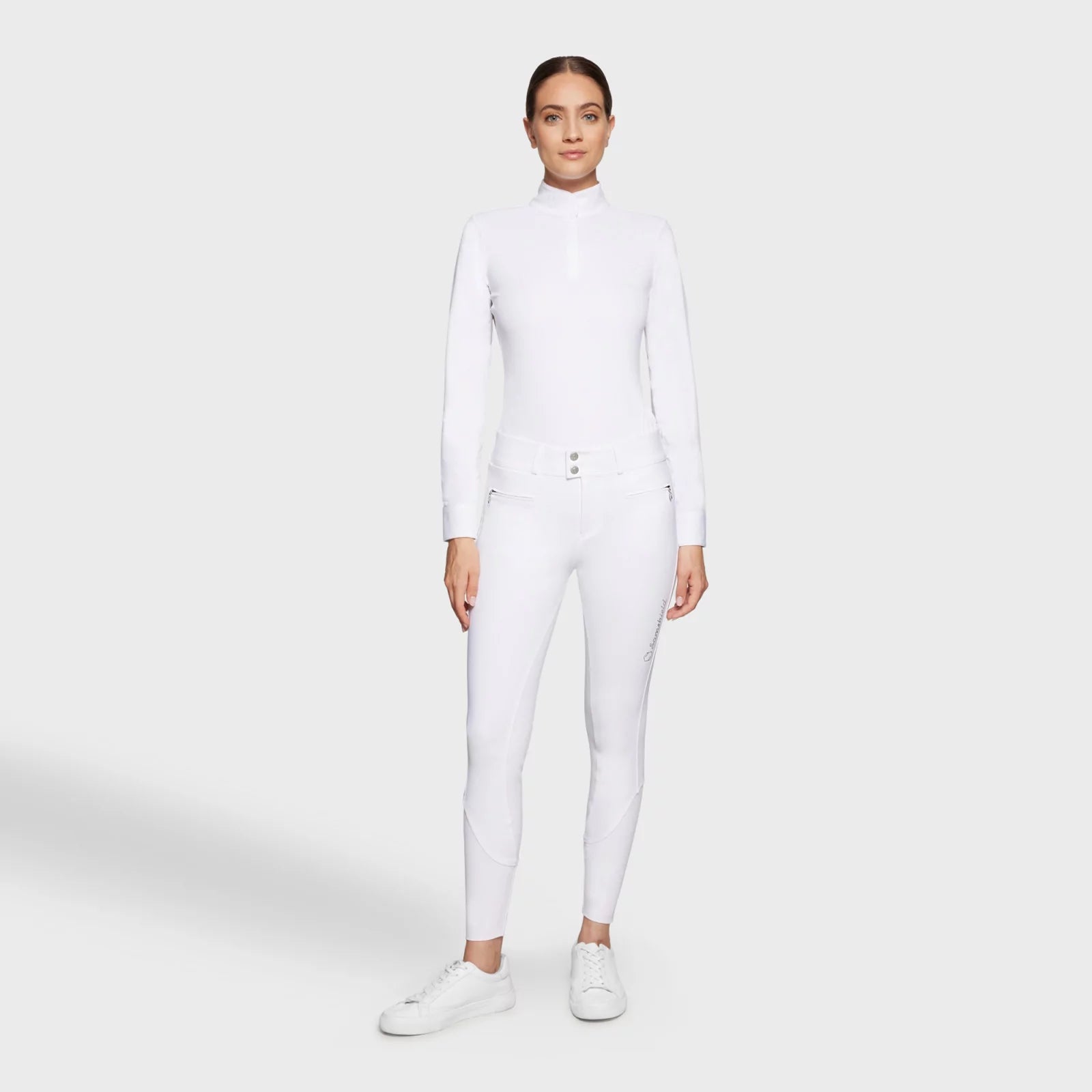 - Style pratique et élégant avec poches à zip sur le devant, doubles poches à l'arrière et logo Samshield en cristaux avec détails le contour du blason