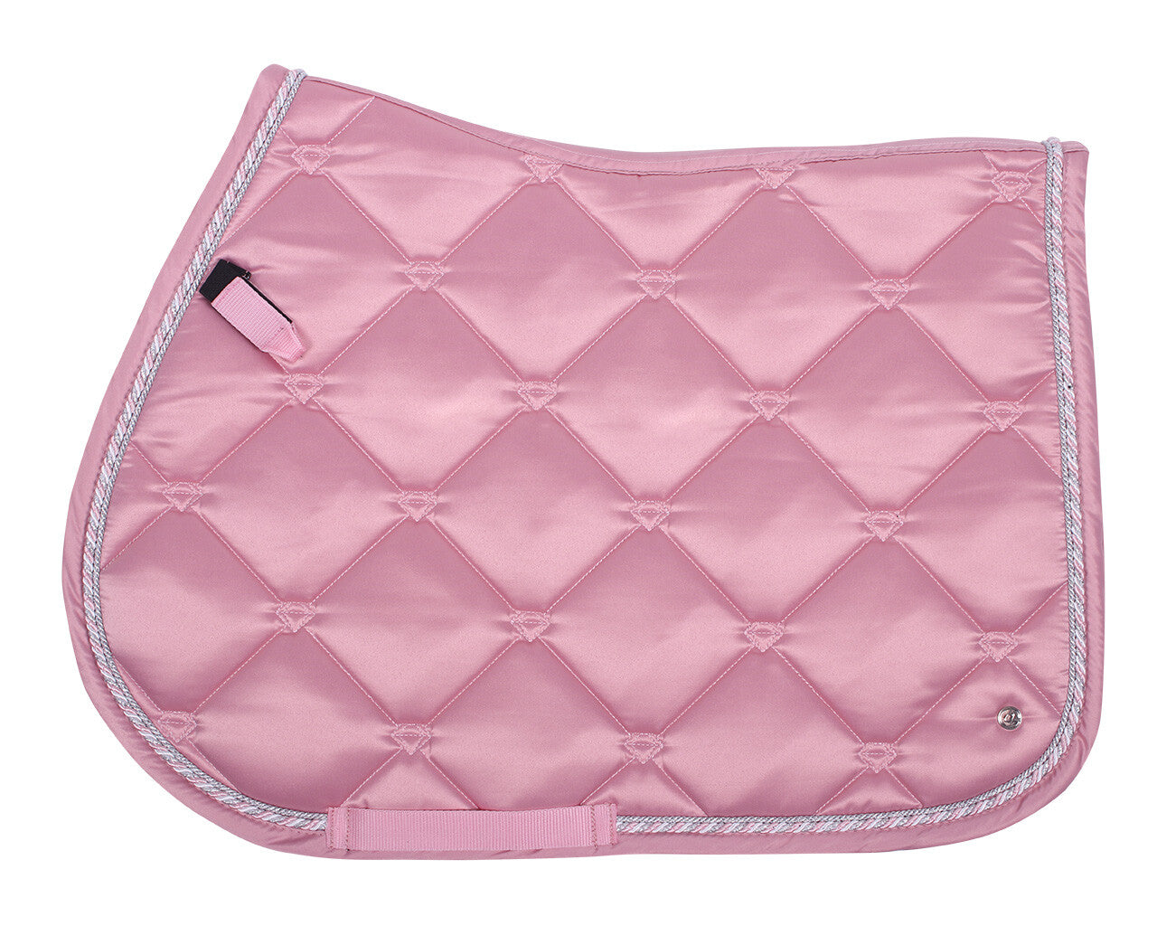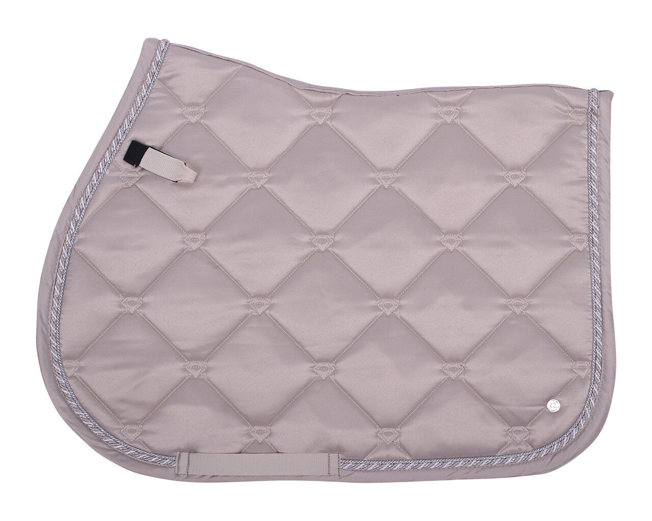 Tapis de selle élégant avec matelassure en diamant et deux cordons décoratifs pour la touche chic supplémentaire. Le tapis de selle comporte des passants de sangle et des passants de selle courts qui permettent au tapis de selle de rester bien en place. L'épingle "Q" sur le côté gauche complète le tapis de selle.