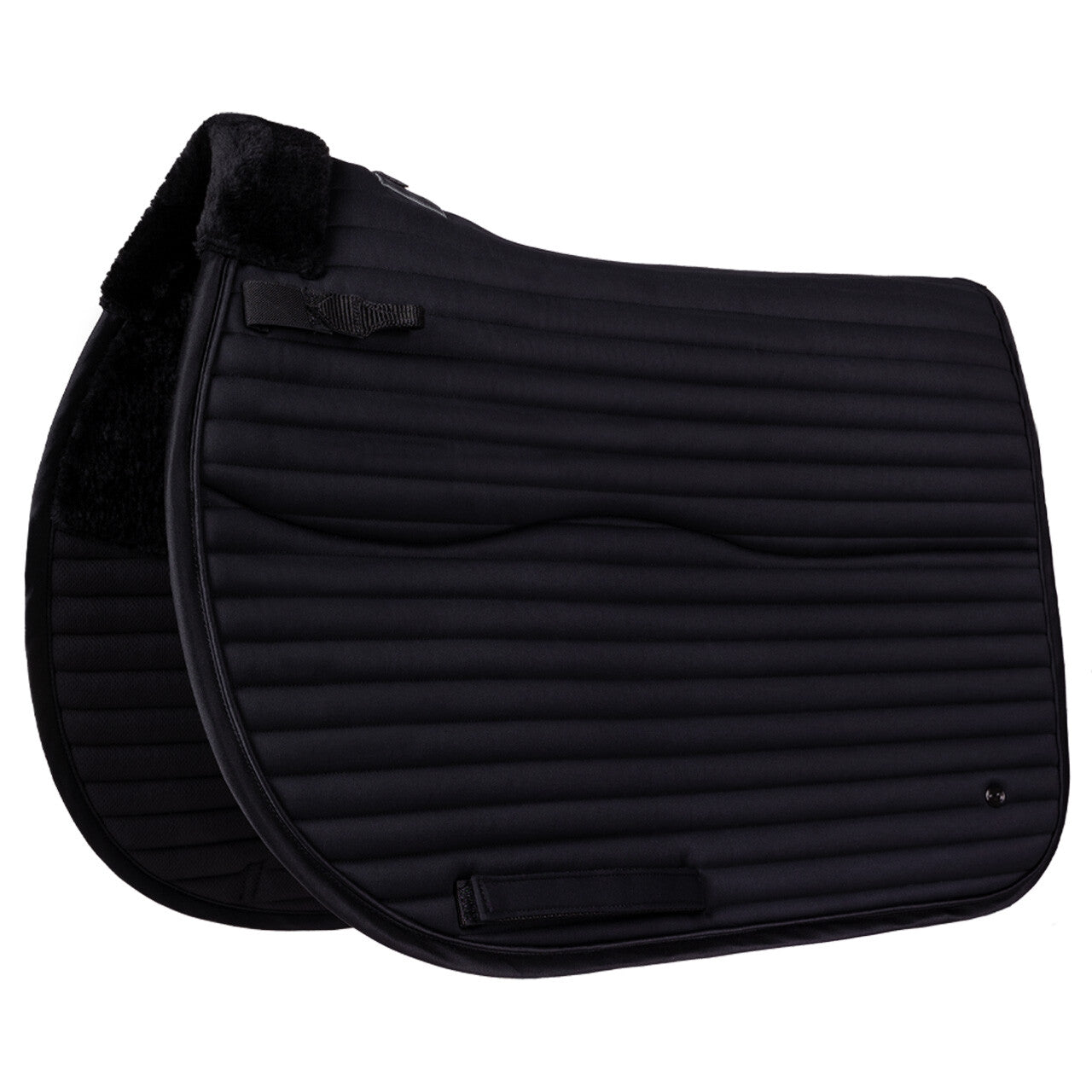 Le tapis de selle Avelie de la collection hiver convient parfaitement aux peaux sensibles des chevaux. Le garrot et la partie dorsale sont équipés de fausse fourrure. Cela permet d’éviter les frottements et d’offrir un bon amorti. De plus, la transpiration est bien absorbée par la maille absorbante. Le magnifique matelassage horizontal en combinaison avec le Q-pin donne au tapis de selle un look cool.
